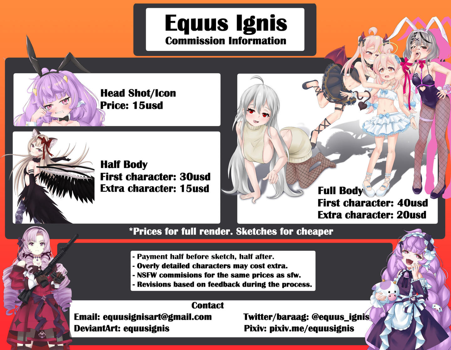 The commision will be worked at stages where you can provide feedback at each stage revisions can be done. 3 revisions are allowed for the sketch, and 3 after. These revisions are only for the work provided since the last accepted stage, meaning bigger changes like poses and similar are only allowed for sketches.